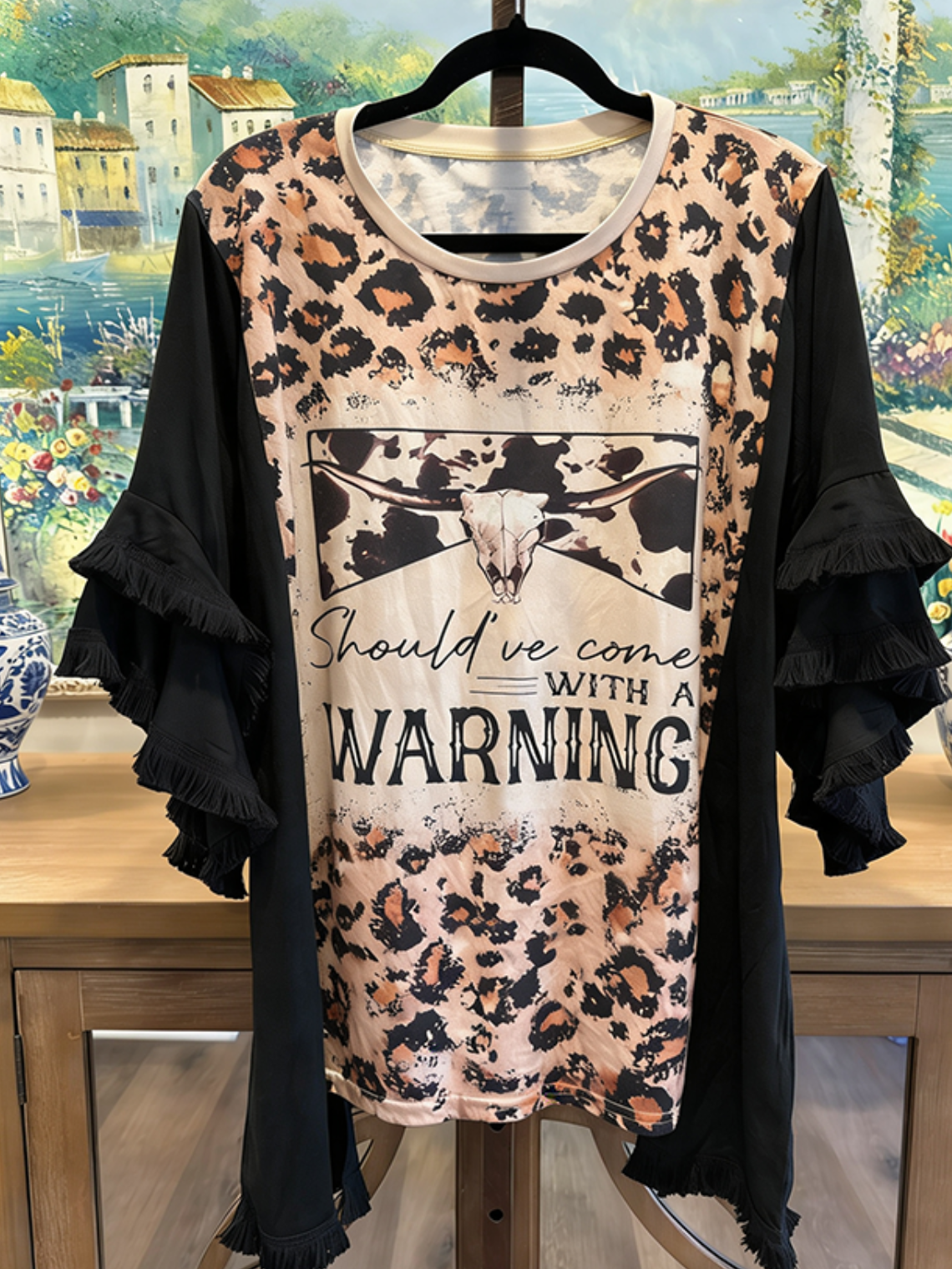 Printed long-sleeved top
