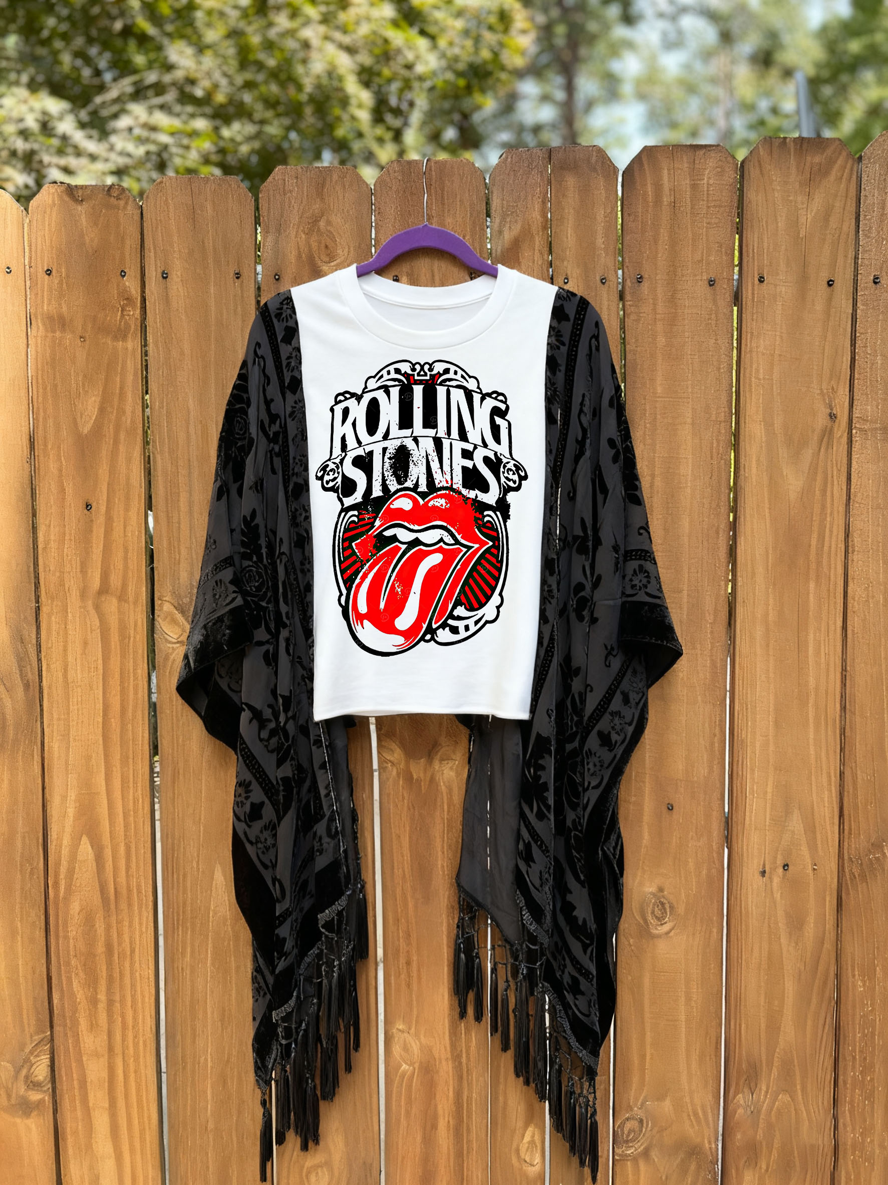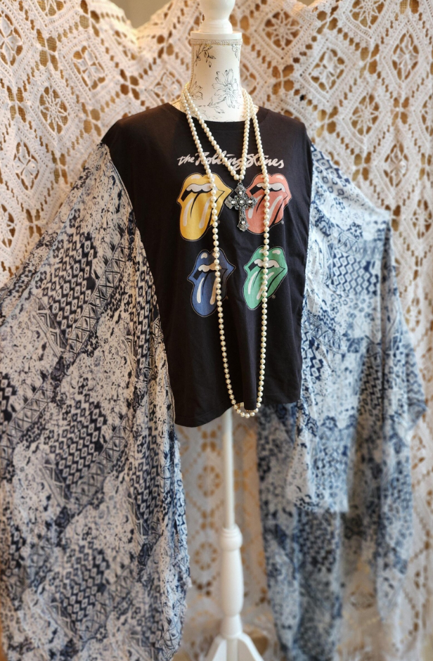 Roper Band Tee Rolling Stones Rainbow Lips Mix & Match Tassel Tee