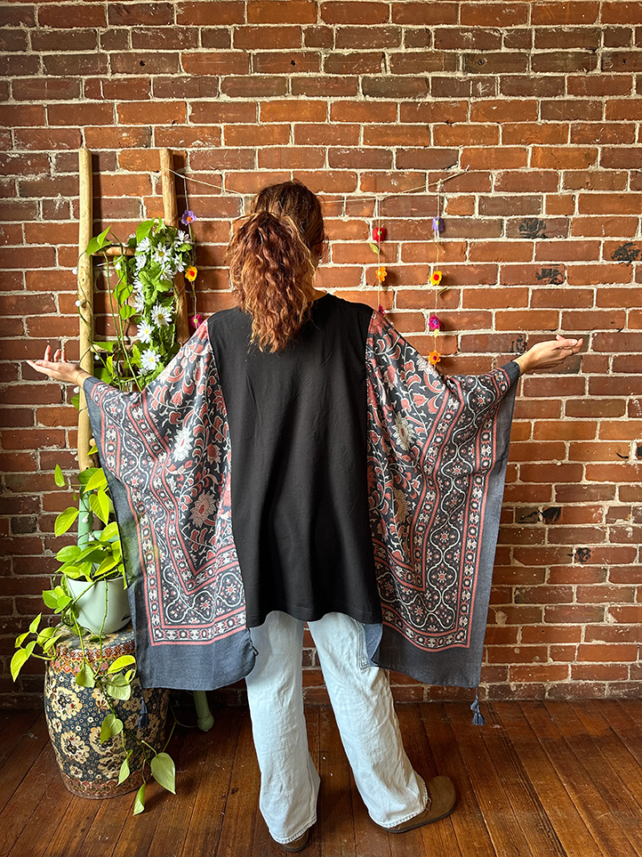 Description Bring out your inner rock star with this David Bowie-inspired hilo top in a mixed bohemian print. Handcrafted with love, this bohemian-chic top features a unique bohemian pattern and a flowy silhouette perfect for all seasons. The high-low hem adds a touch of drama to your outfit, perfect for concerts, festivals, or just adding a touch of rock and roll to your everyday style. Features: - David Bowie recycled t-shirt - Flowy and comfortable for easy movement - A versatile piece that can be dressed up or down - Bohemian-chic style that embodies a carefree and expressive spirit Sizes 0-20 Length: 28-38 inches Chest measurement: approx. 60 cm Cotton, viscose, and rayon blend Gentle hand wash only, air dry
