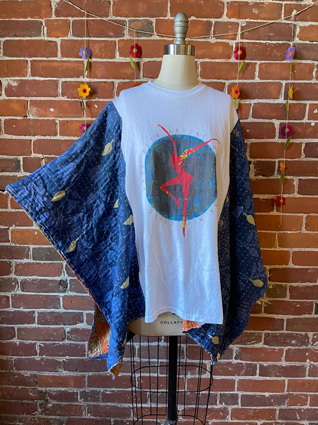 Details One of a kind! Washed vintage graphic T-shirt with batwing sleeves Material: 50% cotton/50% recycled blend Sizing: One size fits most Model wears size OS Model Measurements: Size 4 Height: 5'2" Weight: 135 lbs Chest: 34" Waist: 27" Hip: 36" Bra Size: 34C