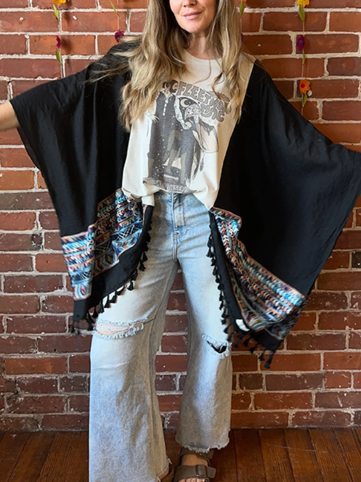 FLEETWOOD MAC black tassel embroidered T-shirt