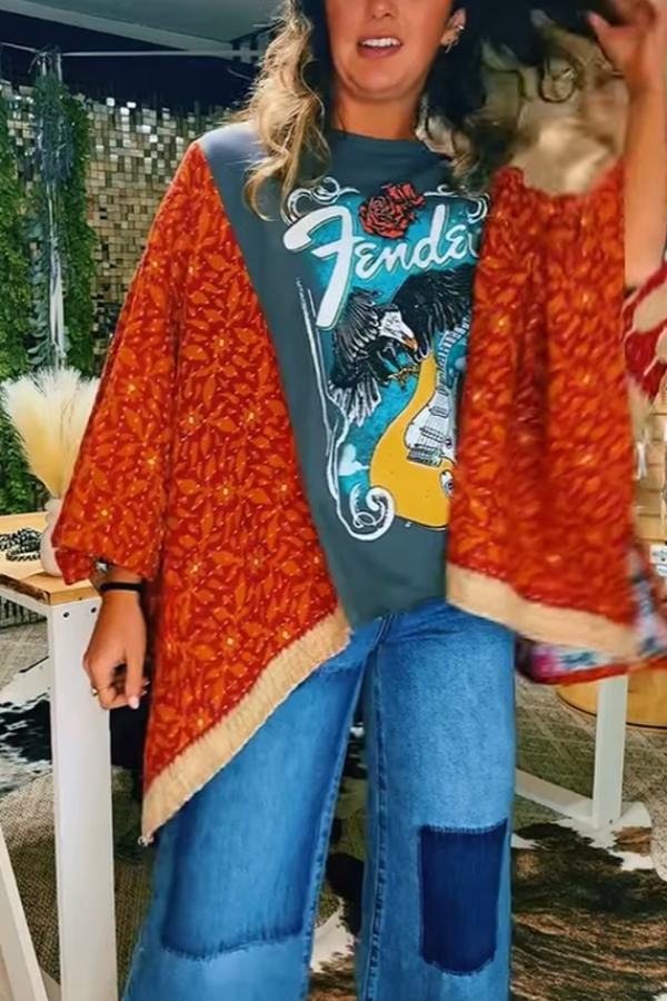 Washed Vintage Graphic Tee with Batwing Sleeve