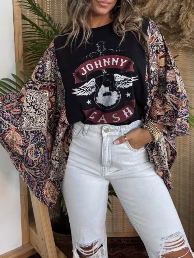 Not restocking! Washed Vintage Graphic Tee with Batwing Sleeve Material: 50% Cotton/50% Recycled Mixed Fabric Back Patch May Vary* Size One Size Fits Most Model is Wearing a Size OS