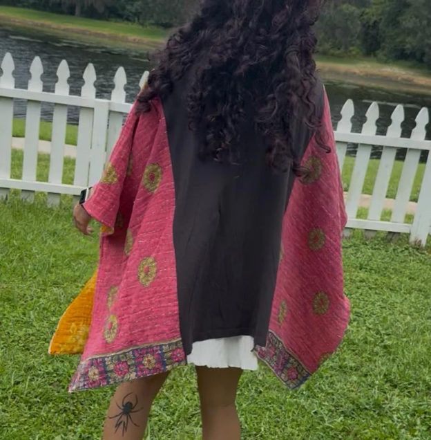 Details One of a kind! Washed vintage graphic T-shirt with batwing sleeves Material: 50% cotton/50% recycled blend Back patch may vary* Sizing One size fits most Model wears size OS Model Measurements Size: 4 Height: 5'2" Weight: 135 lbs Chest: 34" Waist: 27" Hip: 36" Bra Size: 34C