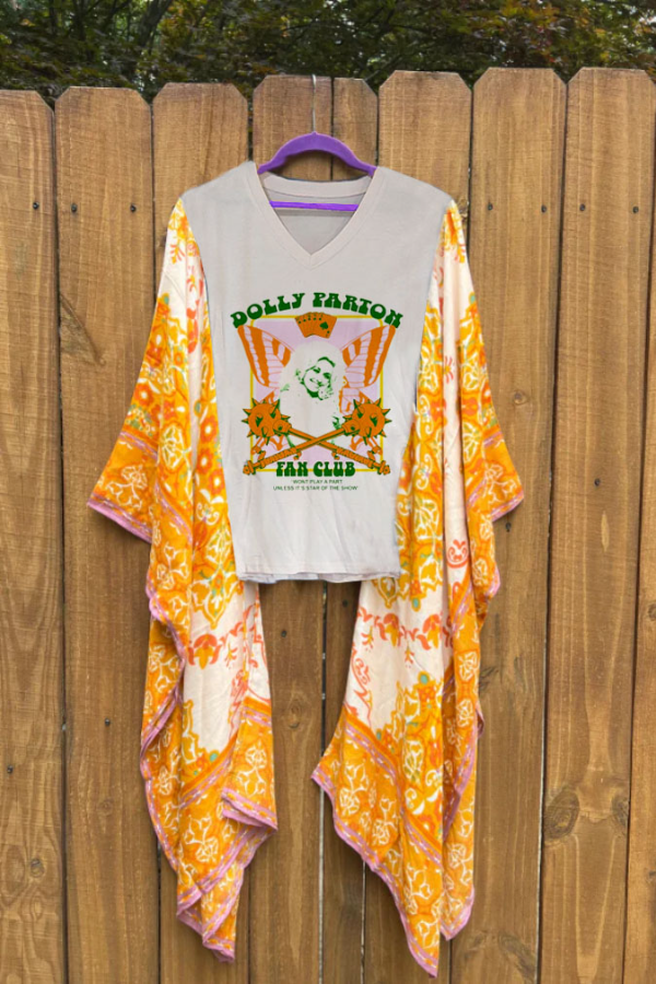 DetailsOne of a kind!Washed Vintage Graphic Tee with Batwing SleeveColor: PictureMaterial: 50% Cotton50% Recycled Mixed Fabric