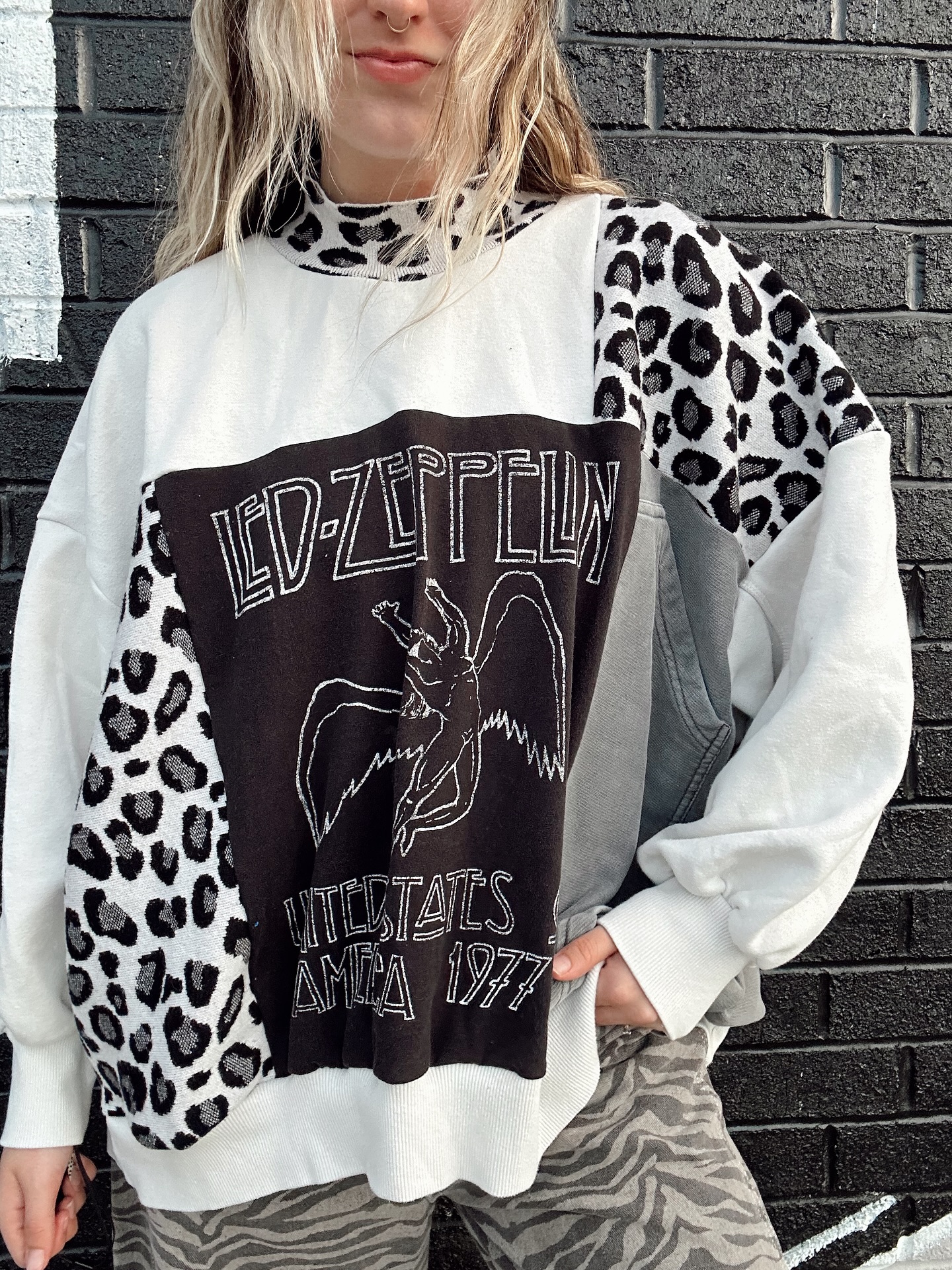 Product Description Led Zeppelin stitching with leopard print details, double-strand fabric sports sweatshirt Model measurements: Height: 165cm, Weight: 55cm, Chest: 90cm, Waist: 72cm, Hips: 100cm Product size M/38 is used. Fabric Type Cotton: Due to its breathable structure, it keeps perspiration to a minimum. This is a fabric that is easily favored in hot conditions. Due to its natural structure, it is non-allergenic. Please note the heat ratio during washing and ironing.
