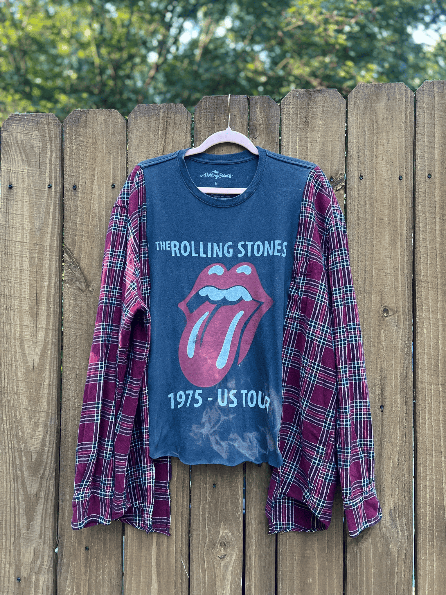 Thrifty T-shirt + Open Flannel Sleeves. Vintage/thrifted. Made from soft men's flannel. This is slightly cropped... the bottom of the T-shirt has just been cut off to give it a raw edge. Handmade in sizes XS-XL using vintage and thrifted materials.